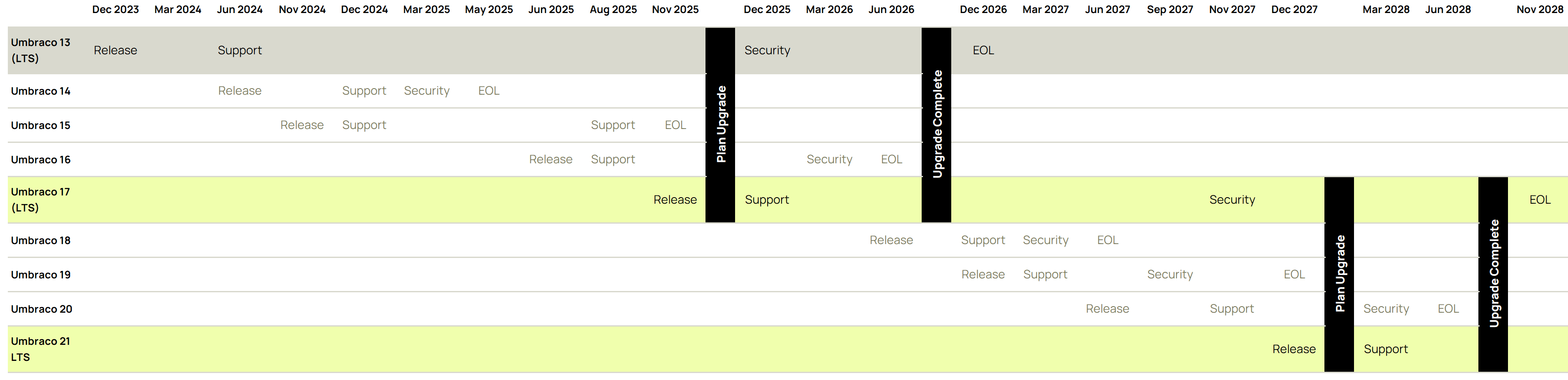 Find out more about Umbraco’s release cadence.