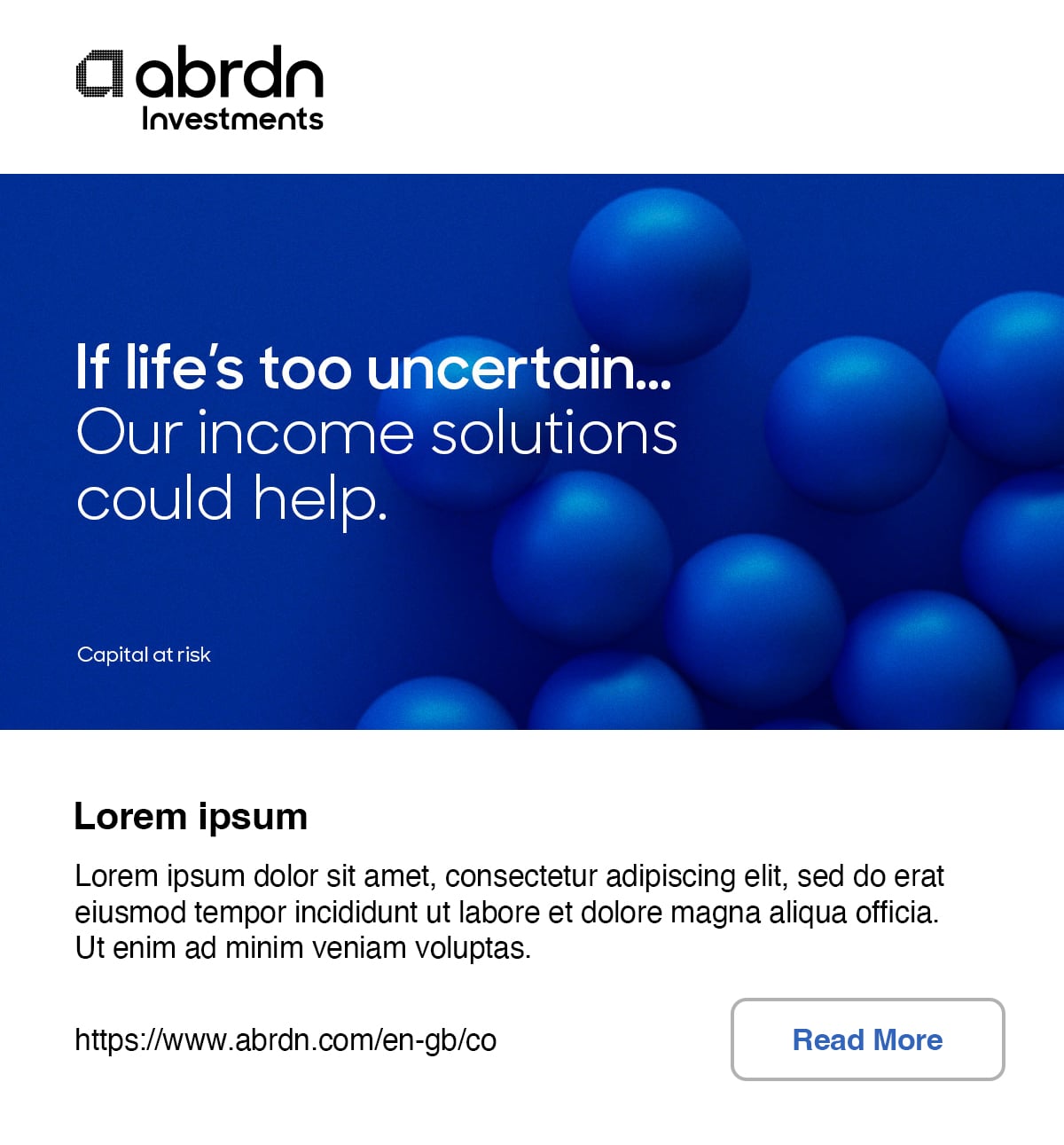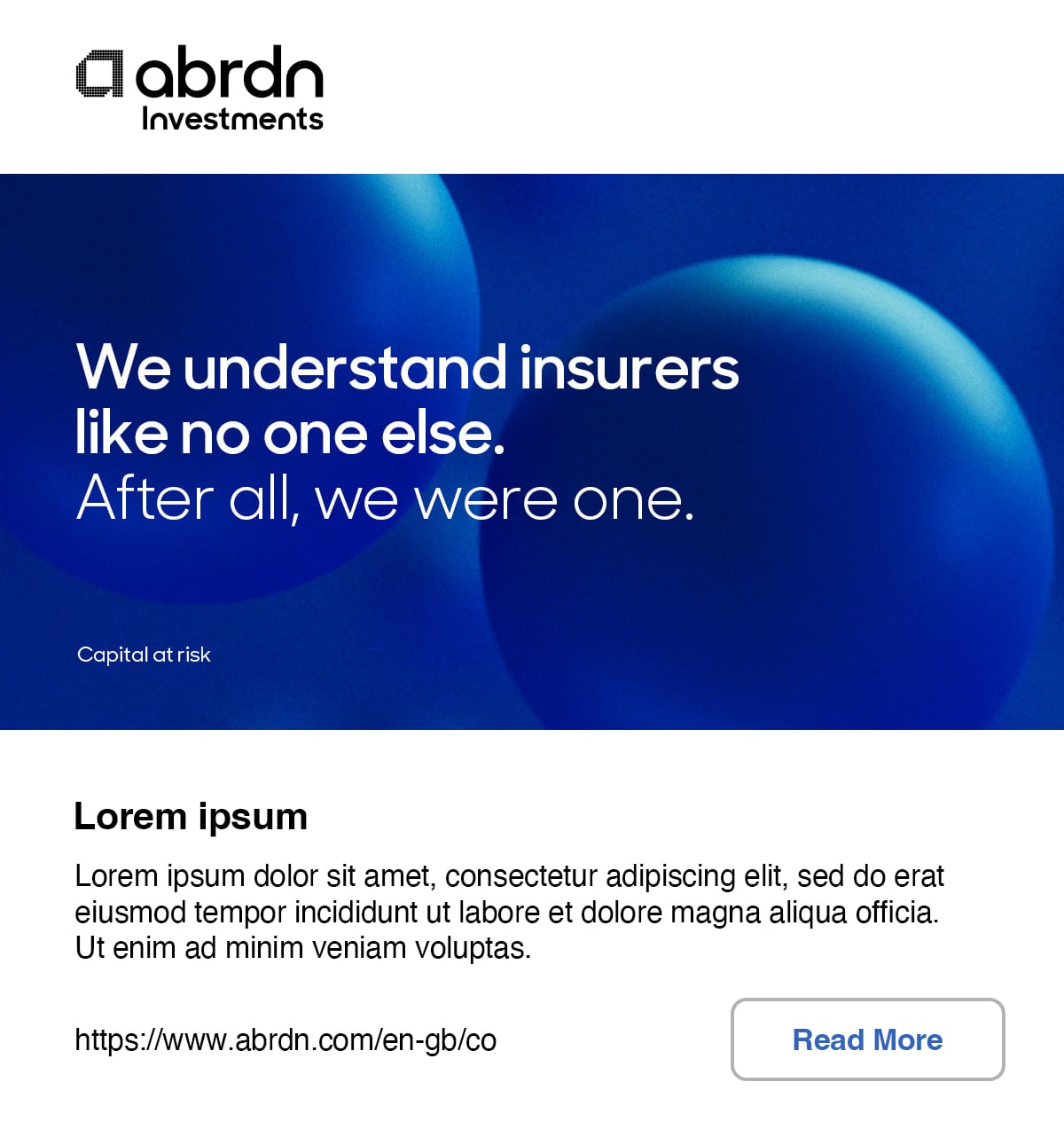 abrdn is one of the UK's largest investment managers, running a 12-month media activation plan spanning institutional and intermediary audiences across eight capabilities. For four of those capabilities, they needed display advertising that would hold its own on premium publisher sites. The brief was to avoid the conventions of the category: the stock imagery, the generic straplines, the visual language that could belong to anyone.