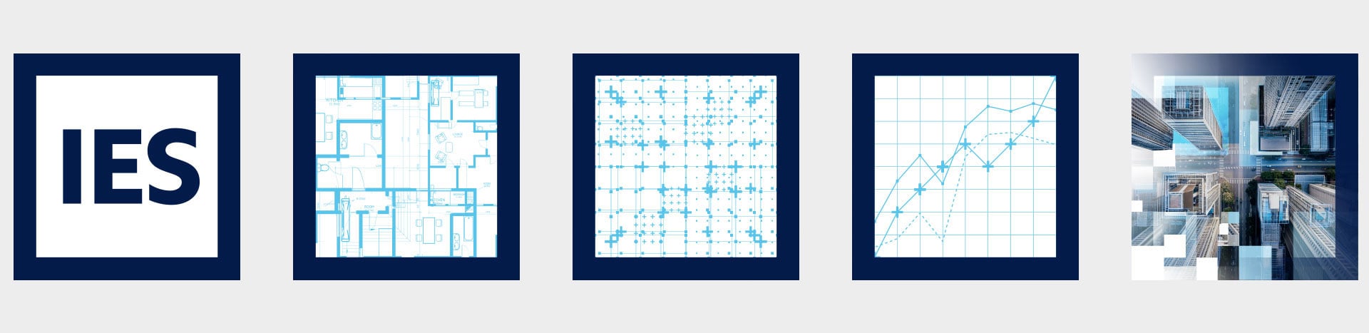 We started with a visual identity refresh, then kept going. The creative concept came directly from IES’s own product logic: the Virtual Environment, the simulation space at the core of their flagship IESVE software, where buildings are modelled and analysed for energy performance. We evolved the square-framed logo into a dynamic grid framework, a visual language built around data, precision, and clarity. Buildings emerge through the grid as if sharpening into focus, from simulation to reality.